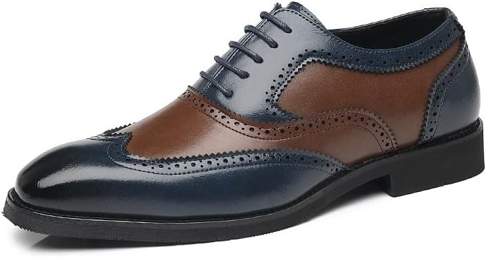 DADIJIER Men Oxford Shoes Lace Up Wingtips Square Toe Blue Brown Two Tones